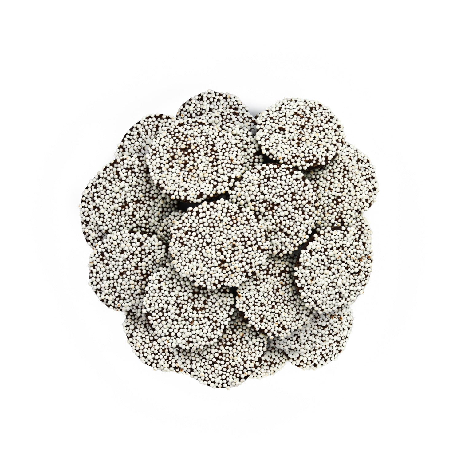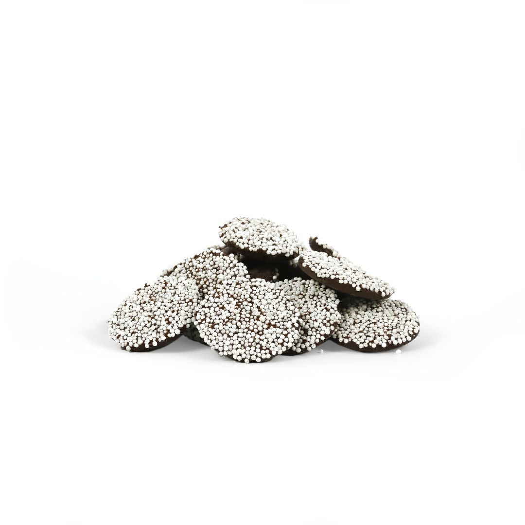 Experience a classic candy favorite with Hoffman’s Dark Chocolate Nonpareils. Each smooth, rich dark chocolate disc is generously topped with tiny, colorful sugar sprinkles, creating a delightful combination of bold cocoa flavor and playful texture. At 8oz, this bag is perfect for sharing, gifting, or savoring all to yourself.
