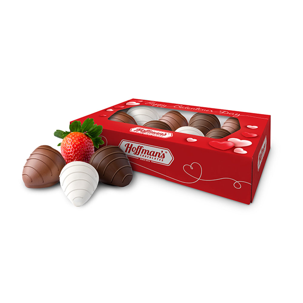 Our Seasonal Chocolate Enrobed Strawberries are BACK for Valentines Day. We start with 1 lb. of fresh, juicy Florida strawberries, then trim the stems and enrobe them in our decadent, smooth chocolate. This box is a mix of Dark, Milk, and White Chocolate